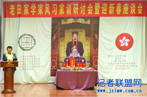 我是中国信息报主编田建海,兼职中央党校出版社《大美县域》执行总编、《中国村志》丛书编委会主任、全国"我为父母写一部书”活动组委会主任、华夏百科信息研究院院长兼田氏文化研究中心主任、华夏融媒集团(筹)总创始人,籍贯是被晋景公号称“土厚水深,居之不疾,有汾、浍以流其恶,且民从教,十世之利也!”的山西省侯马市。我这次从北京赶回太原,应邀出席“老田家学家风习家训研讨会暨迎新春座谈会”,有幸与诸位领导、宗亲代表齐聚一堂,感到非常高兴和激动。今天是田族史上值得特别纪念的日子,我们的会议活动也必将在山西田氏家族史上留下浓墨重彩的一笔。
